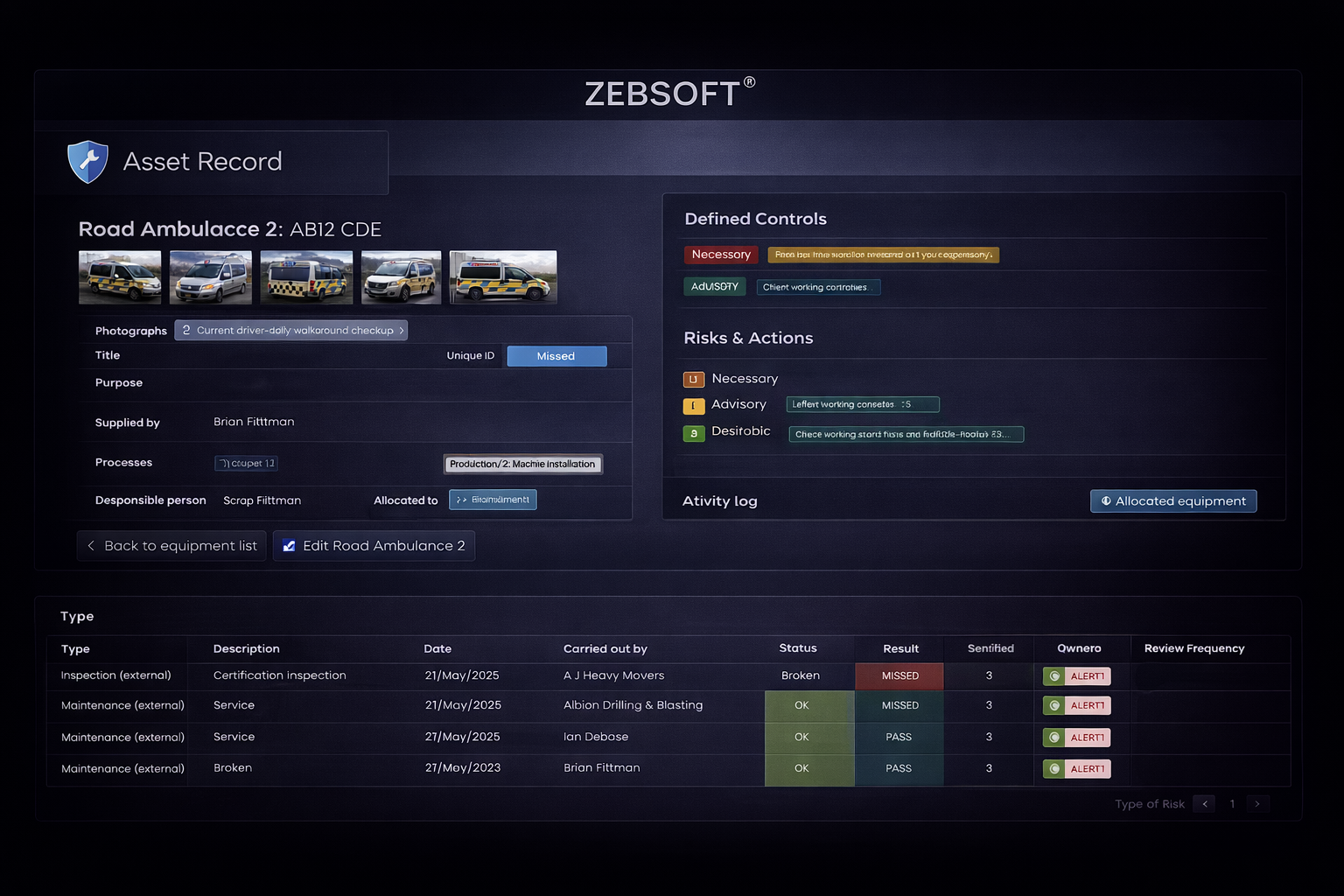 By uniting asset registers, maintenance scheduling, supplier oversight, and risk management in one connected platform, Zebsoft helps you prove control, maintain compliance, and extend asset lifespans.